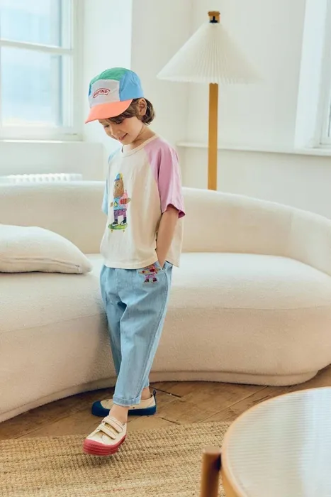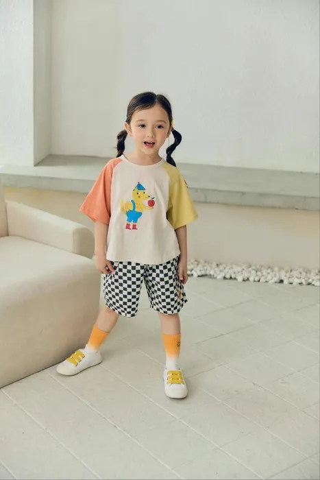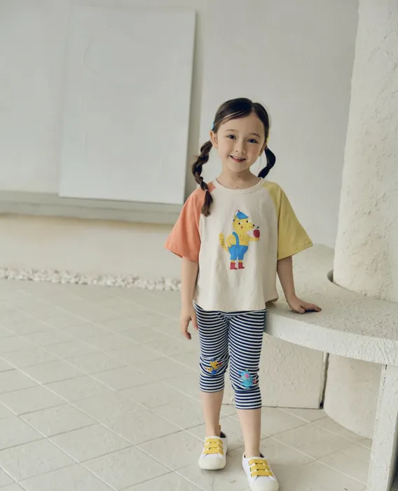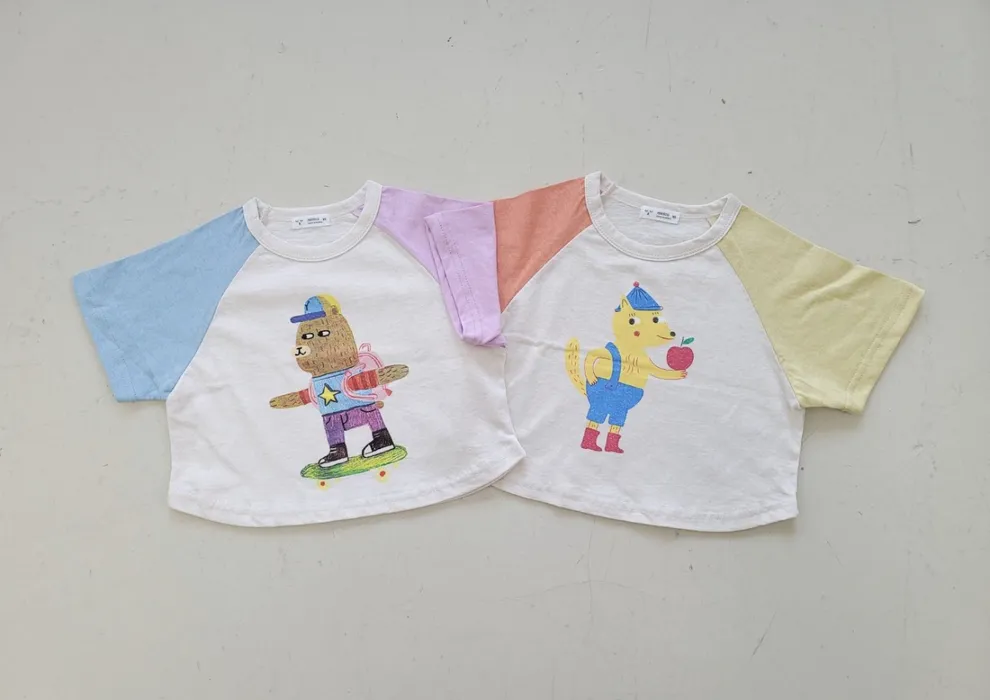 撞色袖非常可愛 搭配大卡通圖案 活力十足非常適合夏天