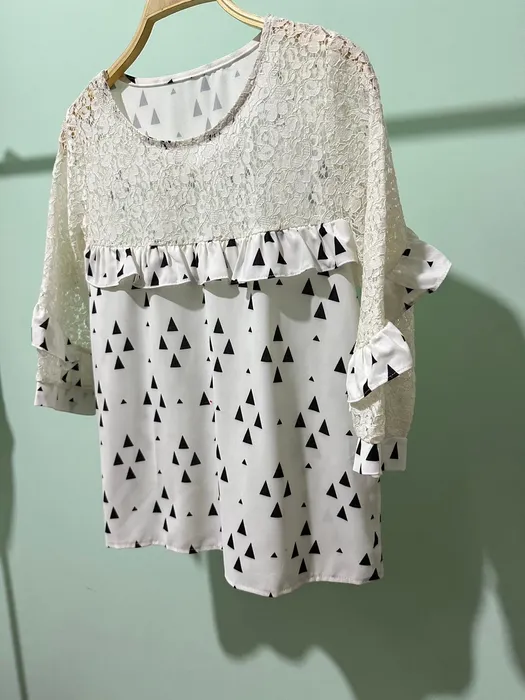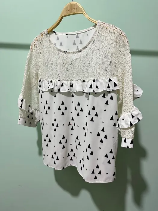 蕾絲拼雪紡上衣