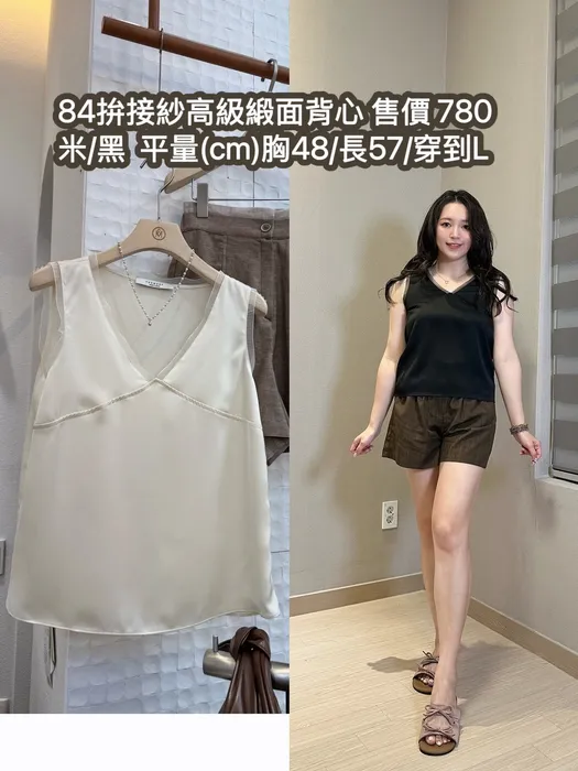 84拚接紗高級緞面背心