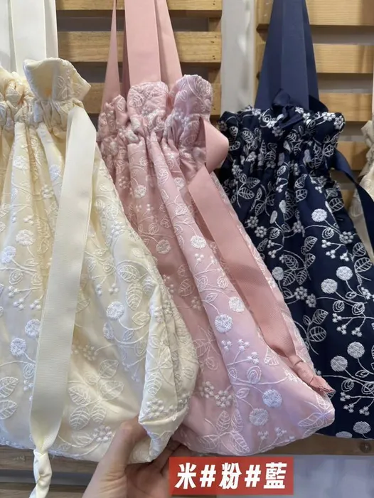 刺繡蕾絲包_刺繡肩背束口袋(新款)