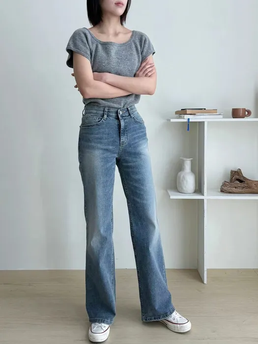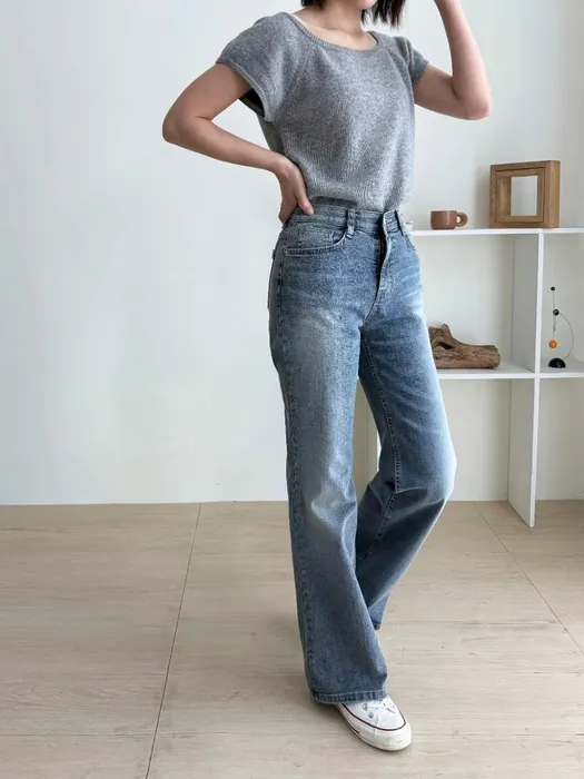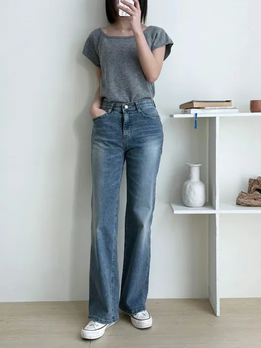 是屬於微寬的直筒褲版型,適合不喜歡穿貼腿褲的女孩~