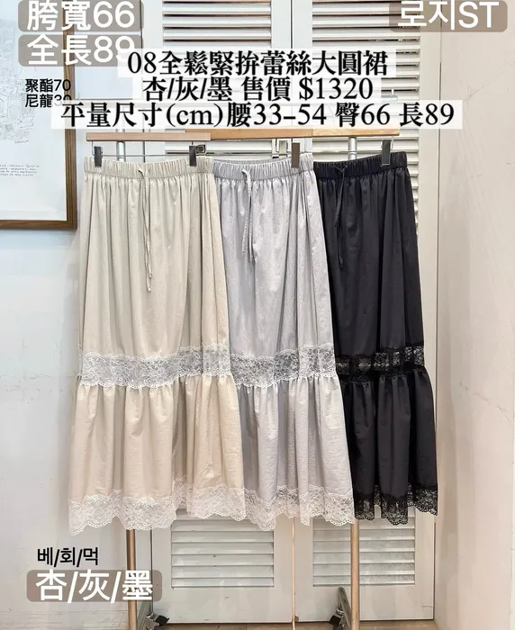FA08全鬆緊拚蕾絲大圓裙