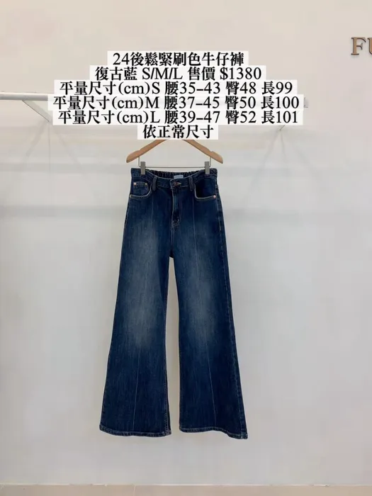 FU24後鬆緊刷色牛仔褲