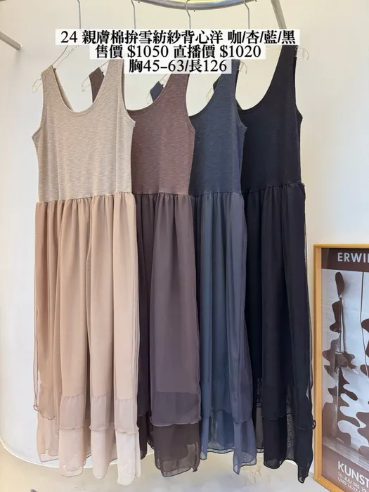 24親膚棉拚雪紡紗背心洋