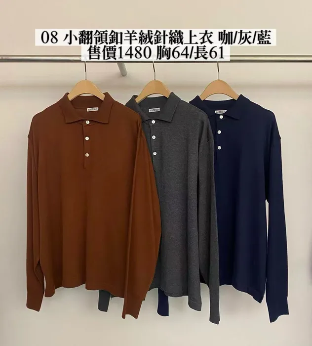 TA08 小翻領釦羊絨針織上衣