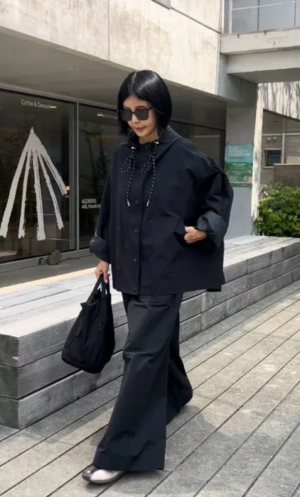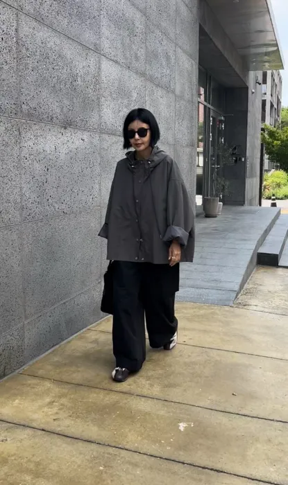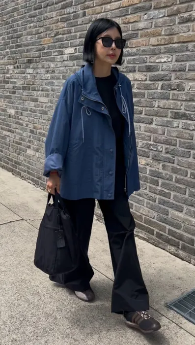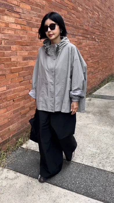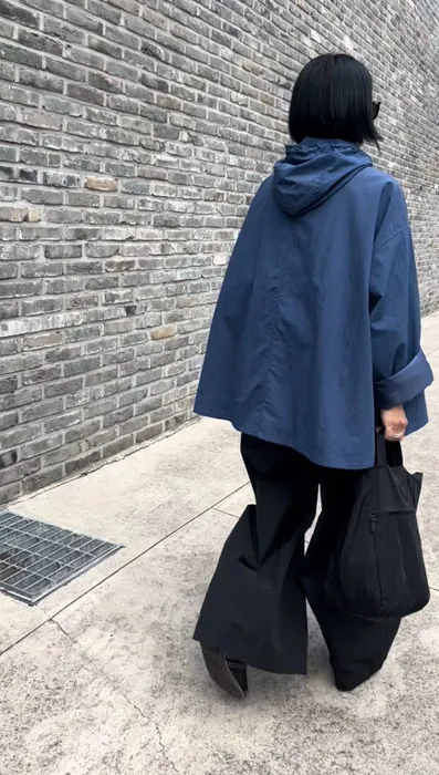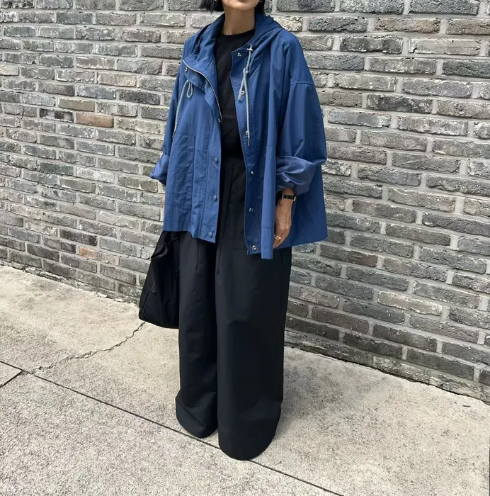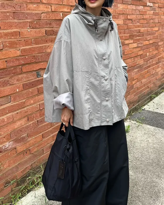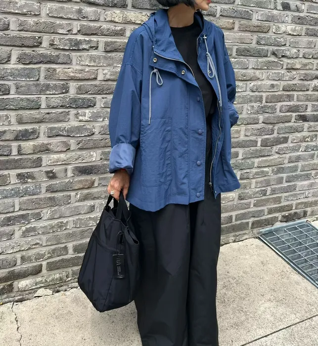 VB09斜口袋金屬抽繩連帽短版風衣外套