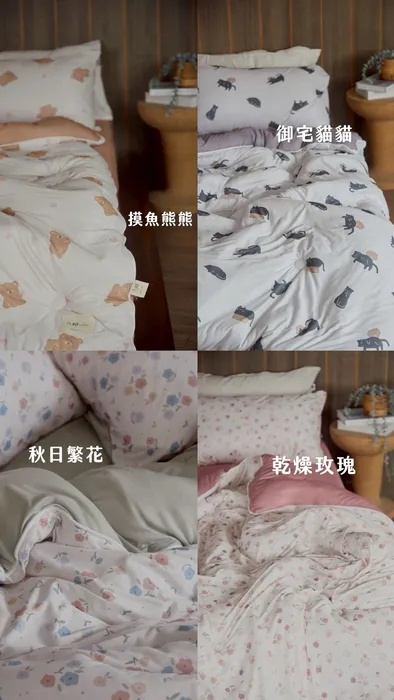 與呼呼被相同材質的床包組,有5款久賴獨家定制花色,多種尺寸、組合任君挑選!