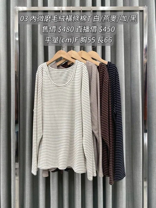 YLL03內微磨毛絨橫條棉T