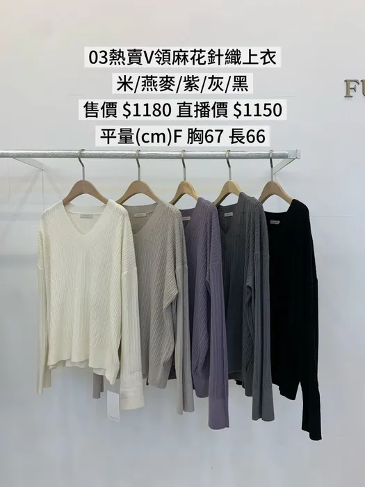 FU03熱賣V領麻花針織上衣