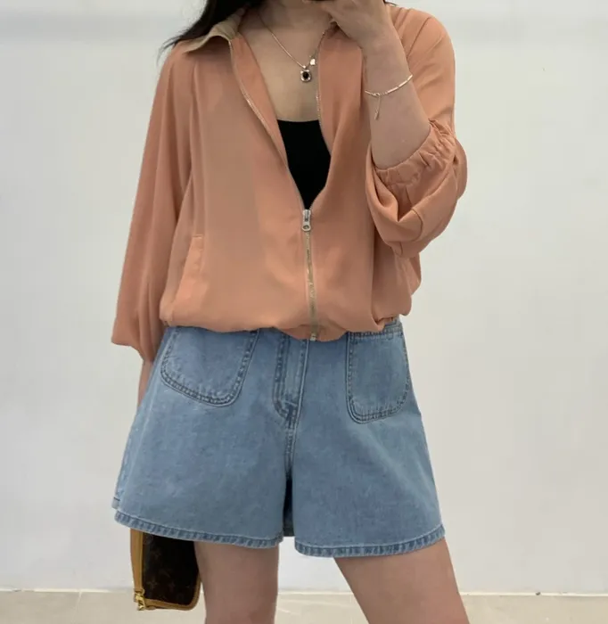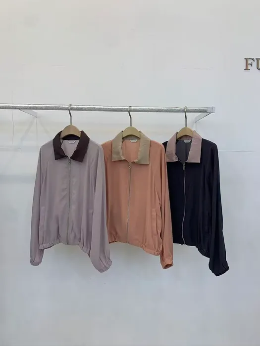 FU16知性撞色立領拉鍊薄款外套