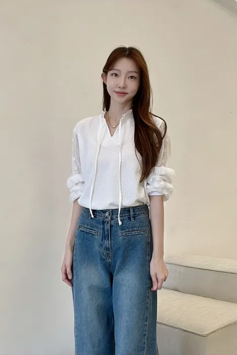 將衣服前緣紮入,瞬間拉長腿部比例,