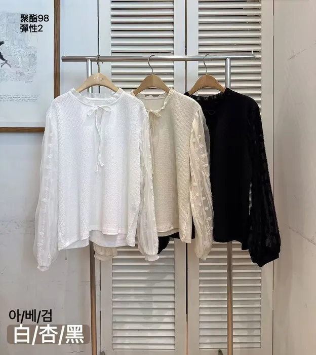 細緻的壓紋與微透膚的蕾絲袖口,