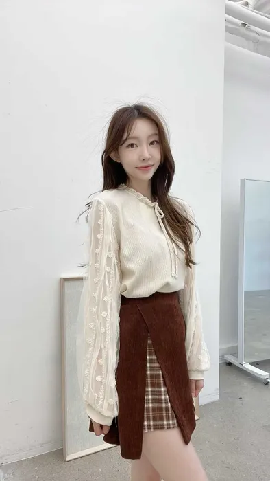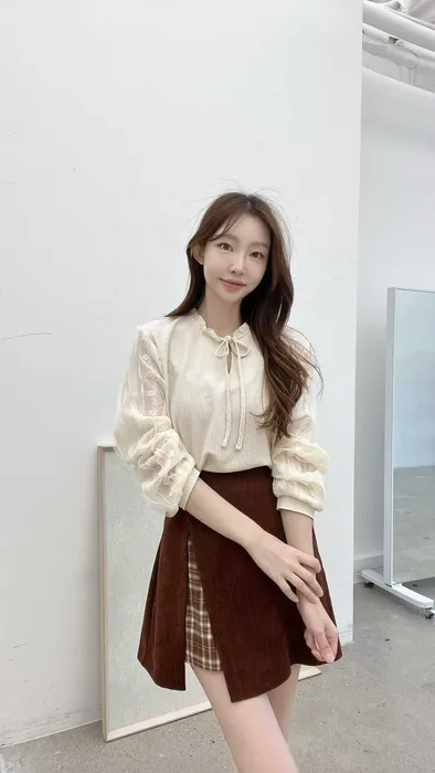 下半身搭配高腰 A 字長裙,