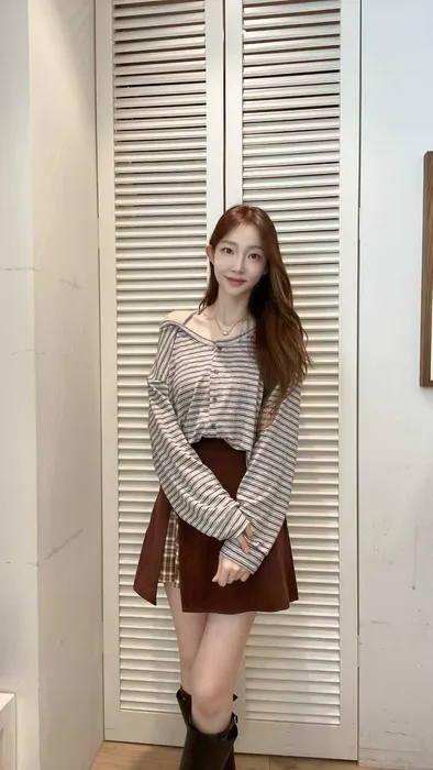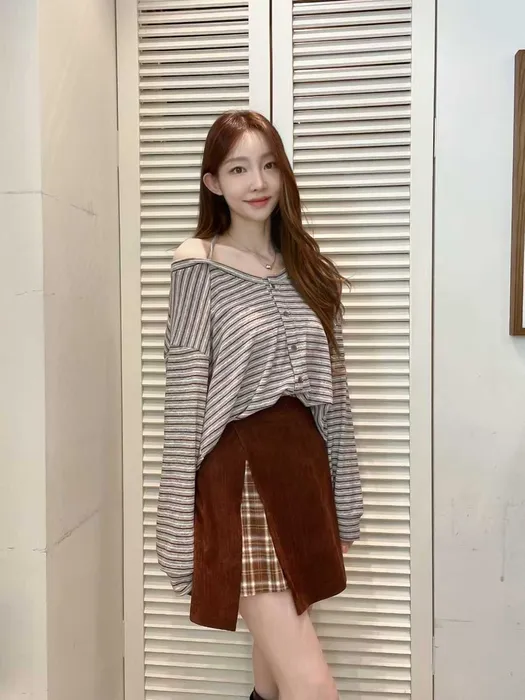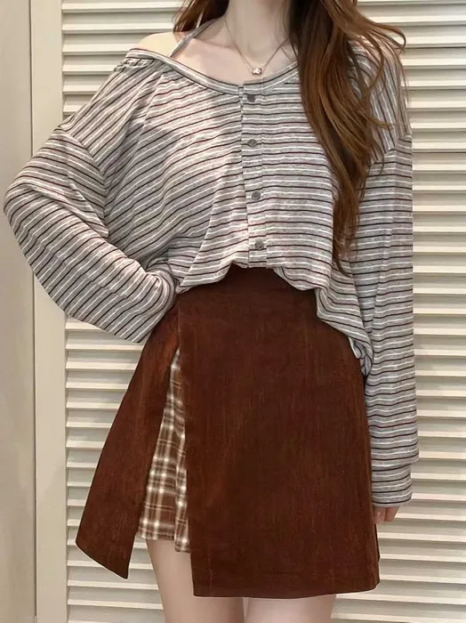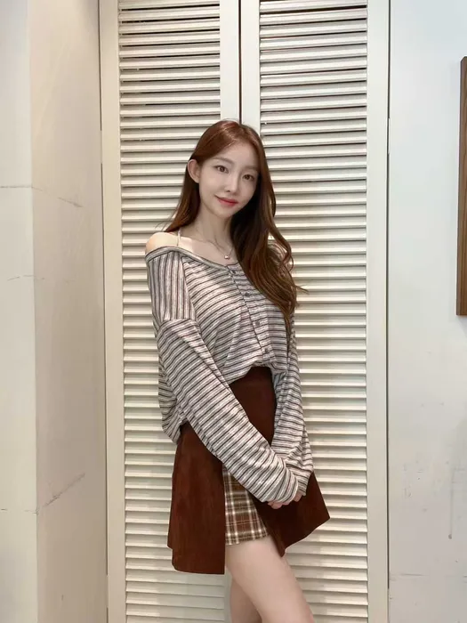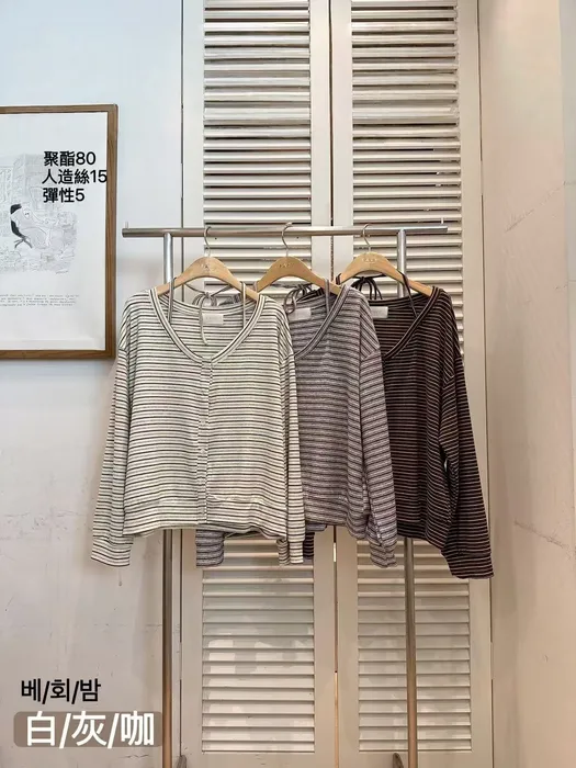 這款開襟衫是藏肉救星!寬大肩線完美修飾厚背與手臂,V領設計拉長頸部線條,視覺瞬間減重。穿搭建議:內搭一件蕾絲小可愛或素色 T-shirt,當作薄外套敞開穿,層次感十足。下身選一條刷色牛仔長裙,柔化條紋的休閒感,呈現出精緻又不費力的大人感日常穿搭!