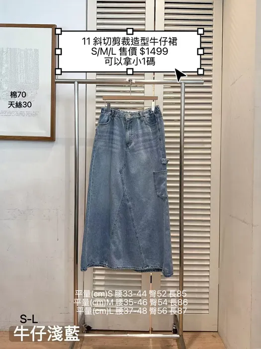 PI11斜切剪裁造型天絲牛仔裙