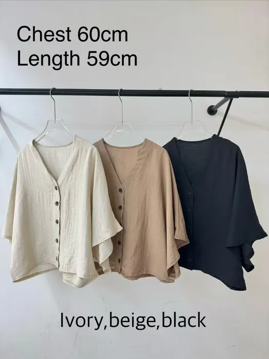 MA09 V領排釦傘擺短袖襯衫