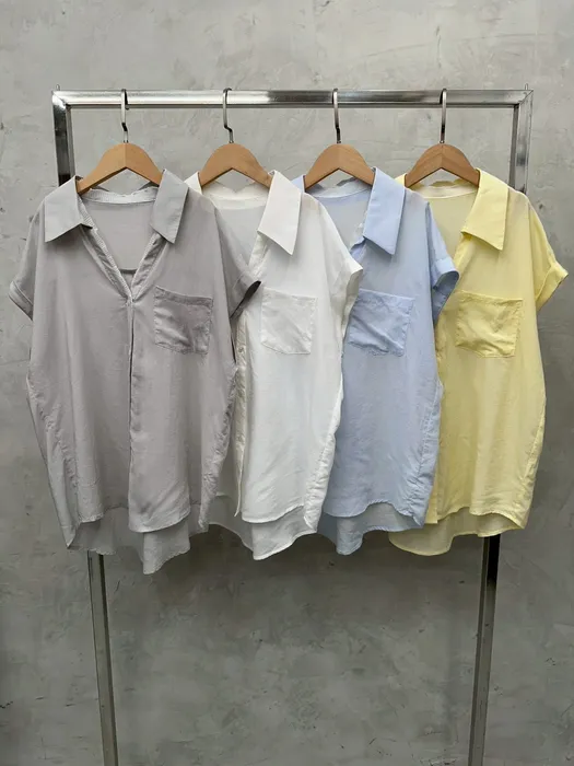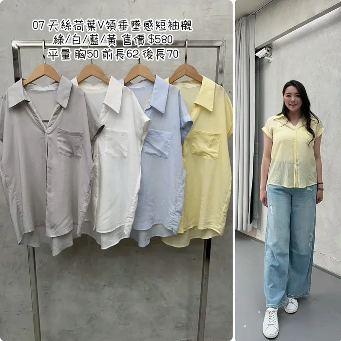 YL07天絲荷葉V領垂墜感短袖襯衫