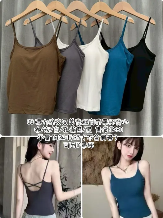 YL08彈力棉交叉美背細肩帶罩杯背心