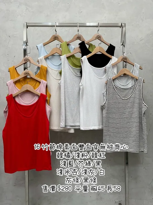 YL16竹節棉素面雙面穿無袖背心