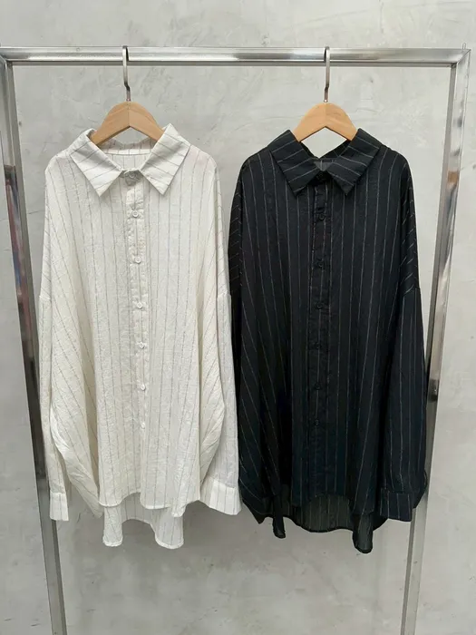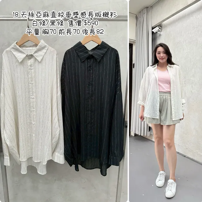 YL18天絲亞麻直紋垂墜感長版襯衫