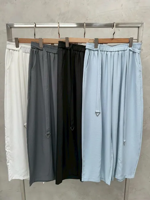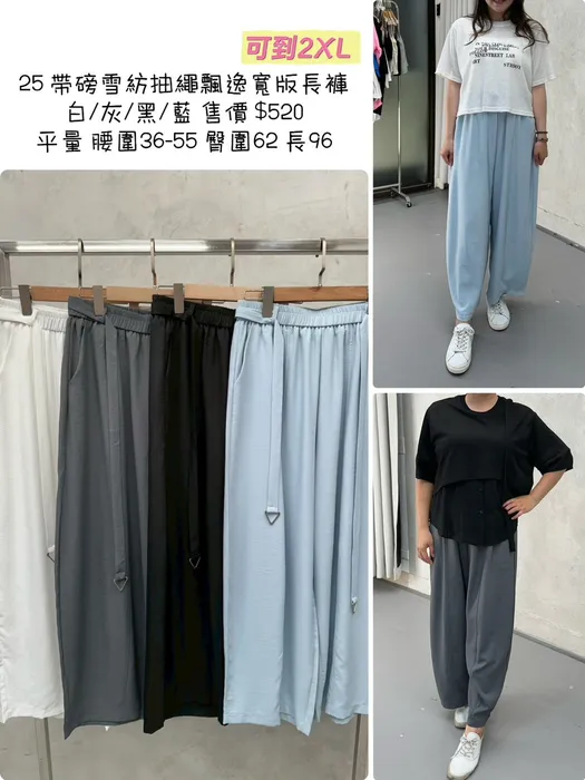 YL25帶磅雪紡抽繩飄逸寬版長褲