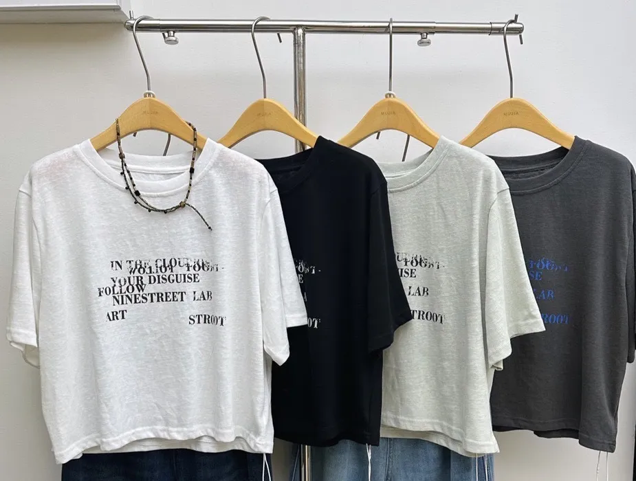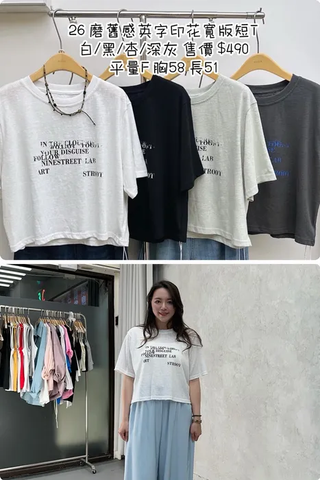 YL26磨舊感英字印花寬版短T