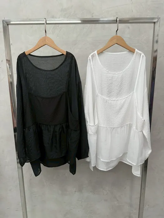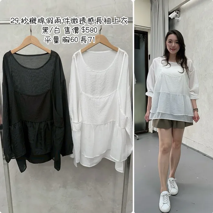 YL29紗襯棉假兩件微透感長袖上衣