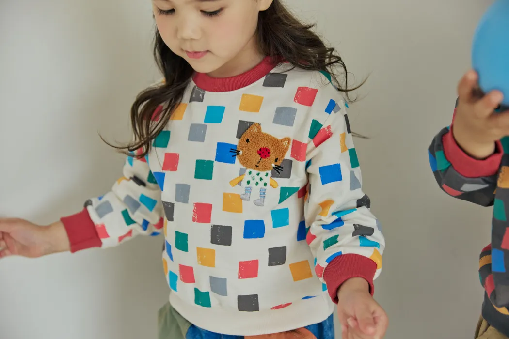 OM48刺繡貓繽紛大學T
